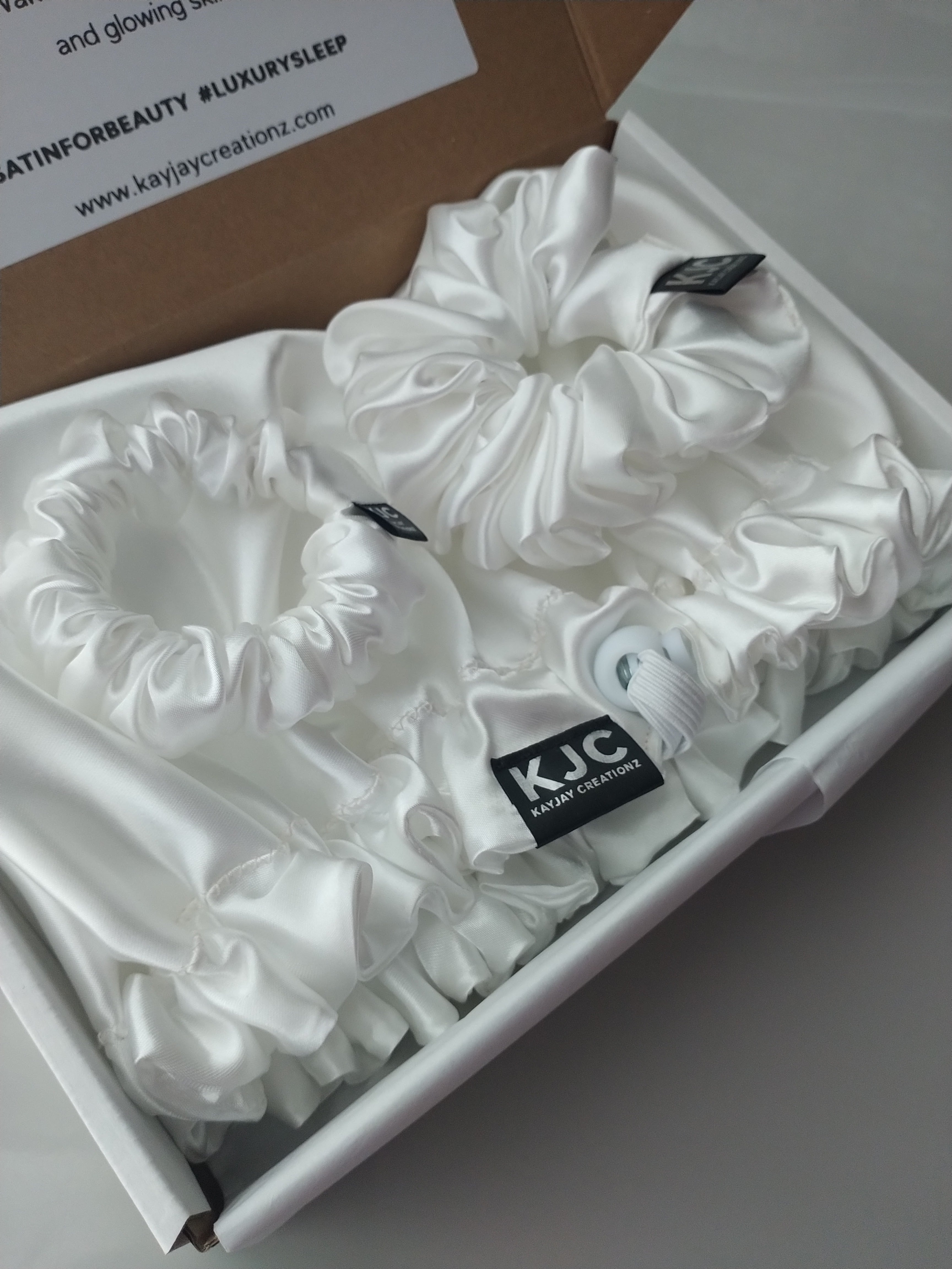IVORY SATIN PILLOWCASE & MATCHING SCRUNCHIE SET