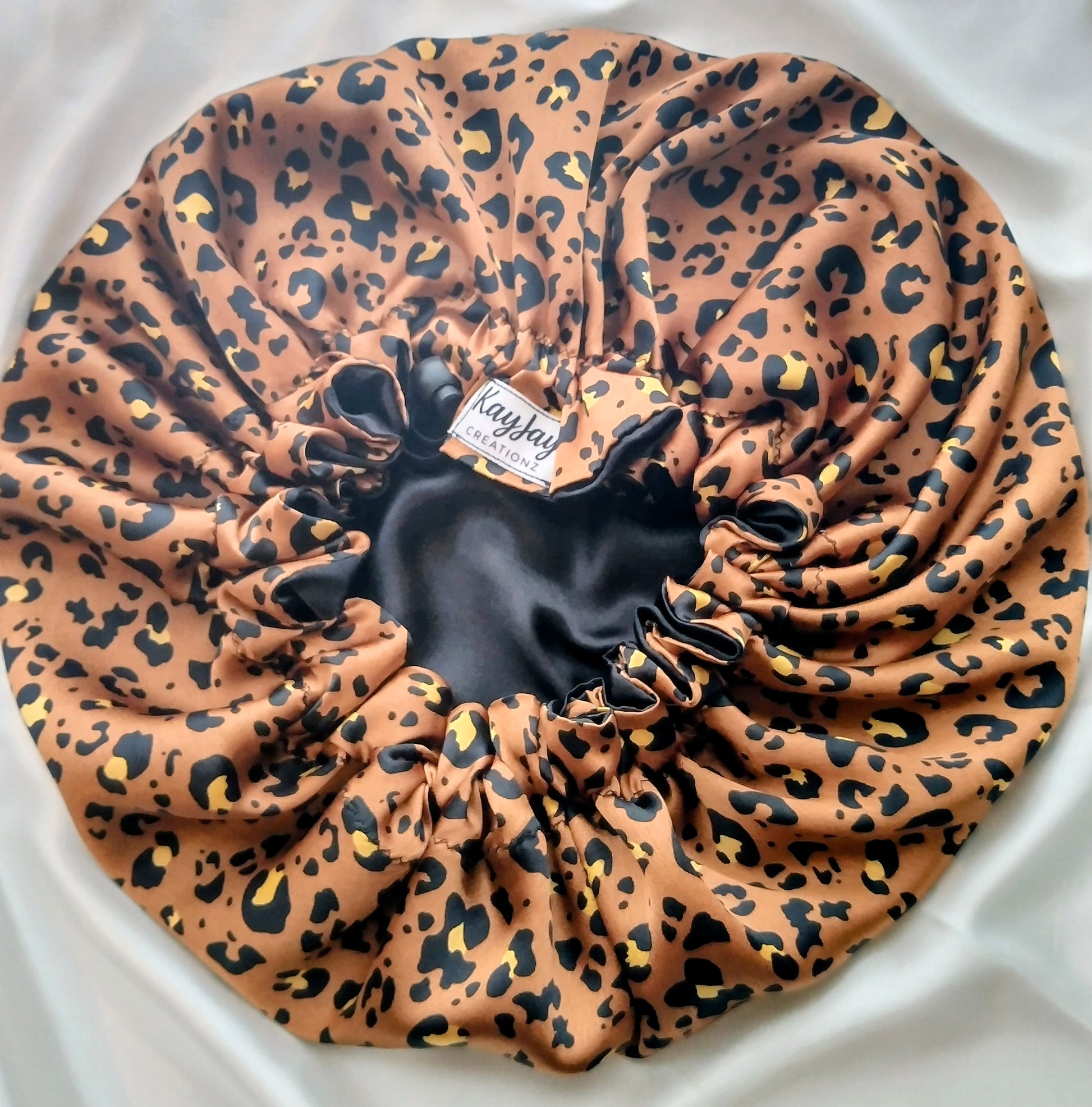 LEOPARD & BLACK SATIN BONNET SET