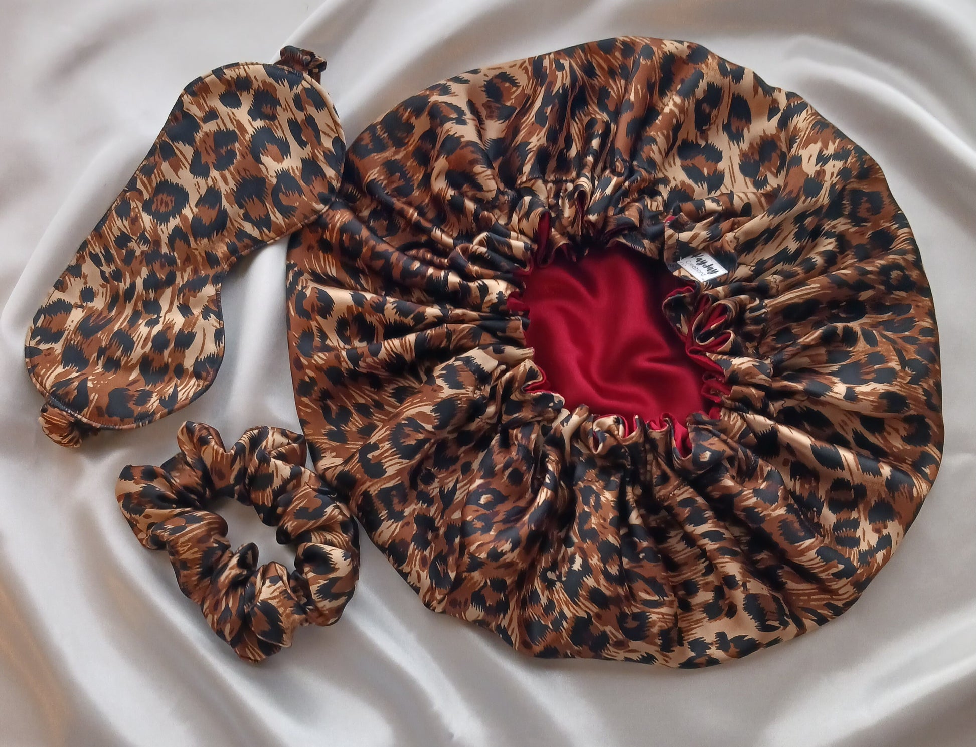 Leopard  Print Satin Bonnet Set